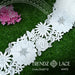 Perfect for high-end bridal gowns, formal wear, and couture designs, this wide lace is a superb choice for adding a grand and sophisticated border. Its timeless white hue and opulent floral pattern make it an excellent option for creating a focal point on a dress, decorating a veil, or adding a touch of classic luxury to any fabric.
