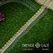 Add a touch of delicate elegance and texture to your creations with Trendz Lace – KZ-411. This beautiful fancy lace features a unique and intricate design with a repeating pattern of circular and geometric motifs, meticulously lined with shimmering micro-beads and sequins. The beadwork creates a continuous, sparkling pattern that catches the light beautifully, offering a sophisticated and clean finish. The lace is set on a subtle sheer base, giving it a lightweight and ethereal quality.