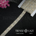 Elevate your designs with the delicate and opulent touch of Trendz Lace – JIL-1646. This exquisite fancy lace trim features an intricate floral and vine pattern, richly embellished with shimmering imitation pearls and dazzling clear rhinestones. The embellishments are meticulously arranged over a metallic threadwork base, creating a highly dimensional texture that catches the light beautifully and radiates luxury.