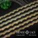 Add a touch of modern elegance and texture to your creations with Trendz Lace – JIL-2097. This delicate fancy lace features a unique zig-zag or wave-like design, meticulously lined with shimmering sequins and subtle beads. The bead and sequin work creates a continuous, sparkling pattern that catches the light beautifully, offering a sophisticated and clean finish. The lace is set on a subtle sheer base, giving it a lightweight and ethereal quality.