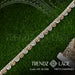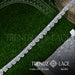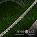 Add a touch of delicate sparkle to your creations with Trendz Lace – HM-JIL-1385. This graceful fancy lace trim features a beautiful scalloped pattern, meticulously adorned with a continuous row of shimmering rhinestones and beads. The intricate design and clean lines create a refined and elegant border that is perfect for adding a subtle yet glamorous touch to any garment or project.